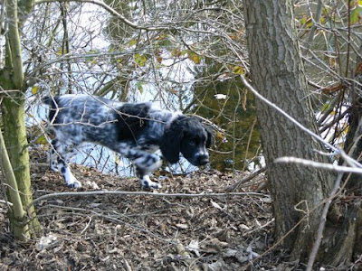 De honden hebben echt geweldig veel plezier met elkaar. Er wordt wat afgespeeld. Jamie is een ontzettend vrij hondje, wil overal achteraan... mensen, honden, fietsers, joggers en vooral PAARDEN! Ik ga al iedere week met haar naar de manage om een beetje respect proberen te trainen, maar we hebben nog een lange weg te gaan met die paarden. Verder moet ik gewoon zorgen dat ik voldoende afleiding voor haar heb en ogen in mijn achterhoofd. Ik ben heel blij dat ze nog geen sloten overzwemt (maar dat zal niet lang meer duren!) De relaxte wandelingetjes zijn voorlopig verleden tijd. Maar als je dan lekker met een paar dummy´s aan het water gaat zitten, dan heeft iedereen pret voor 10! Onze training is ´s avonds in het bos en dan wordt er ineens niets meer geapporteerd. Alle luchtjes zijn veeeel spannender en moet ze echt aan de lange lijn blijven anders is ze er vandoor. Ook hier nog een hele lange weg te gaan :-) :-) Maar zo op die foto's lijkt het al heel wat (ahum)
